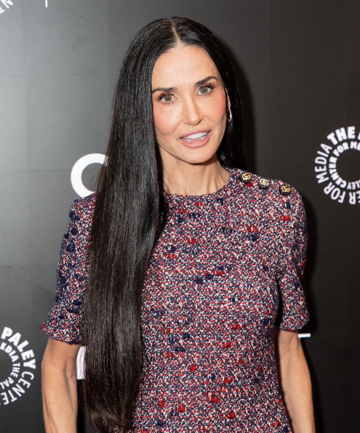 Na crvenom tepihu "PaleyFesta" u Njujorku, gde je promovisala novu seriju "Landman", glumačka diva Demi Mur još jednom je dokazala da je sinonim za bezvremenski stil. Holivudska zvezda pojavila se u elegantnoj Guči haljini od bukleja u kombinaciji tamnocrvene, plave i bele nijanse - sofisticiran spoj koji odiše klasičnim šikom.