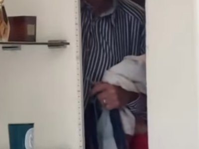 Kako je ispričao, tokom večeri je primetio da se pomera zid sa policom u dnevnoj sobi. Na njegovo zaprepašćenje, iza zida je promolio glavu stariji gospodin samo u košulji i donjem vešu.