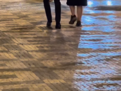 Devojka je nosila elegantan duži kaput uz koji je ponela patike u kojima je veoma opušteno hodala. S druge strane njen partner nosio je krem uži sako i crne pantalone, a sva pažnja bila je usmerena na njegovu obuću. On je imao nazuvene crne cipele sa štiklom na kojima je prilično trapavo hodao. Ovaj neobičan spoj elegancije i ležernosti nije prošao neprimećeno, a mnogi su se pitali o čemu se zapravo radi.