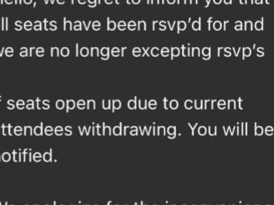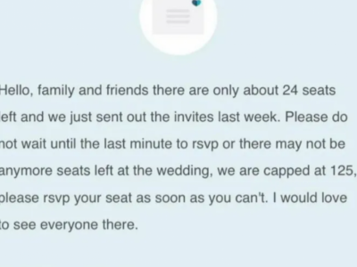 Za one goste koji nisu brzo potvrdili prisustvo, stigla je poslednja poruka od mladenaca, u kojoj se obaveštava da su sva mesta već popunjena i da se više ne primaju nova. Oni se ujedno tim gostima izvinjavaju što ne mogu da ih prime na svadbu na koju su ih u početku zvali.