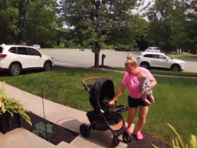 Upravo to se desilo i ovoj mami koja je rešila da prošeta bebu u kolicima. Bilo da je reč o tome da je želela da bebu prošeta pored kuće ili da ubaci kolica u auto i odveze se negde sa detetom, ovu mamu vidimo kako sve obavlja u žurbi. Ona očigledno negde kasni budući da nije imala vremena da iznese prvo kolica, pa bebu, već izlazi držeći dete u jednoj ruci, a vukući kolica u drugoj.