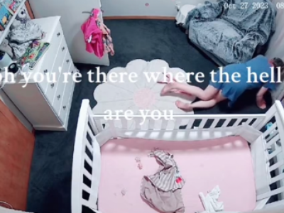 Mama je bila zauzeta razgledanjem presvlaka i nije ni primetila kada je beba nestala iz njenog vidokruga. Primetno je da beba ima oko godinu dana, budući da samo da puzi. Dok je mama pažljivo razgledala različite bodiće i majušne majice, beba je bila veoma nestašna i odlučila je da se malo poigra. Ona je iskoristila priliku mamine nepažnje da otpuzi, provuče se i sakrije iza fotelje.
