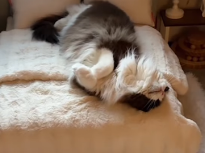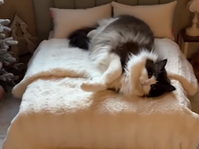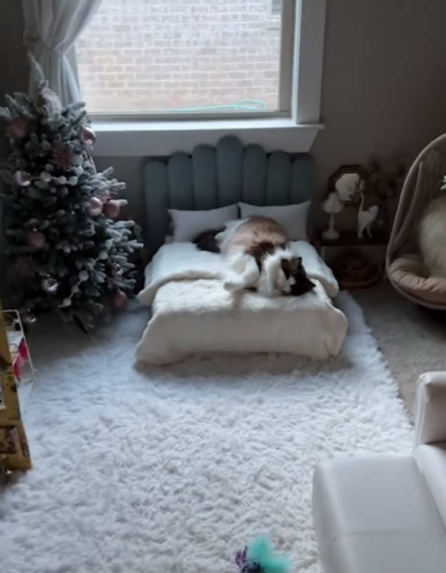 Snimak koji je nasmejao mnoge, ali i izazvao podeljne reakcije pojavio se na Instagramu i prikazuje sobu koja je po svoj prilici opremljena samo za mačku. Vrata su otvorena i vidi se da unutra leži neka vrsta persijske mačke crno-bele boje koja se odmara na krevetu. Međutim to nimalo nije običan krevet. To je bračni krevet sa sve posteljinom, naslonom za krevet i dva jastuka, a tačne je veličine ove mačke. Maca se zadovoljno proteže po njemu, dok je krevet ispod prozora na kome je i zavesa. U sobi se regularno pali i svetlo.