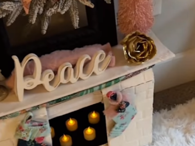 Najinteresantniji detalj je u levom kutku sobe koji je u vidu male jelke koja je bogato ukrašna. S druge strane kreveta nalazi se komodica ili tzv. noćni stočić na kome se nalazi lampa i figurice u obliku mačke. Tu je i čupavi luksuzni tepih, dok je sa leve strane ukrasna polica i maleni kamin u kome simbolično stoje tri sveće i na njemu velikim slovima piše Mir (Peace). Tu je i komoda za navodno presvlačenje, kao i garnitura od skaja sa komodom.