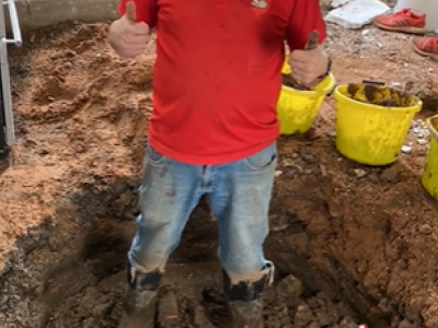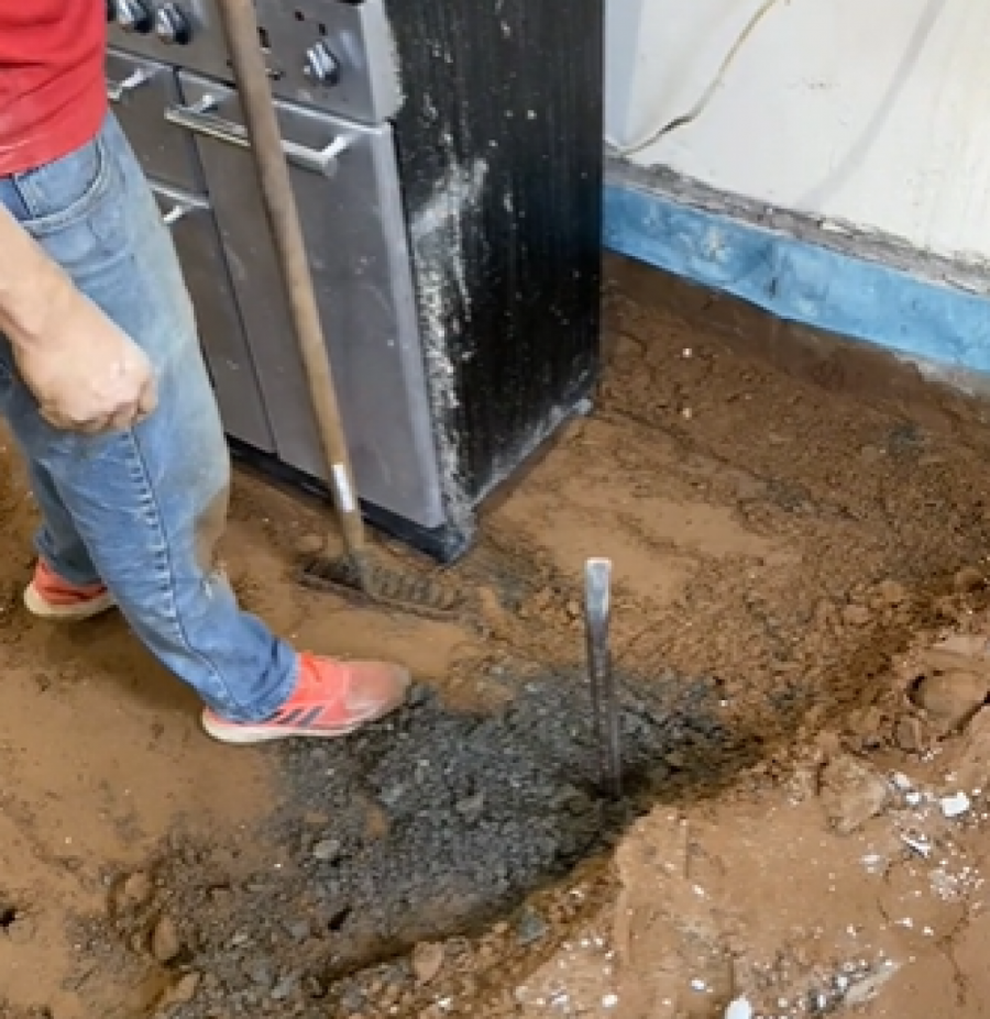Na početku snimka koji traje svega pola minuta vidimo čoveka koji želi da renovira svoju kuhinju. On kopa po podu, očigledno u nameri da izlije novi beton i postavi nove pločice, međutim, u jednom trenutku se dešava da jedan od njegovih alata najpre udara u nešto tvrdo, a zatim propada u tlo. Čovek u neverici nastavlja da kopa i posle kratkog vremena dolazi do vode.