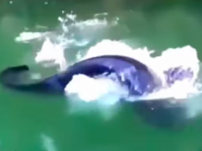 Pecaroš je vrisnuo od iznenađenja očigledno potpuno nespreman za ogromnu ribu koja je izronila iz dubine. Riba je kao od šale pokidala najlon, udicu i da nije bilo snimka koji je sa broda napravio pecaroš niko mu ne bi verovao sa kakvim vodenim čudovištem je imao posla.