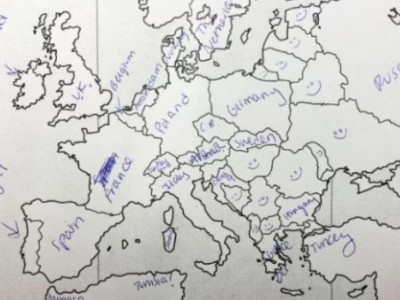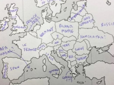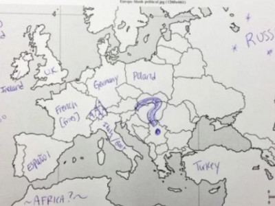 Međutim, odrđena grupa Amerikanaca dobila je test na kome su imali prazna mapu Evrope, nešto poput nemih karata koje smo svi imali u osnovnim školama, te su u državu upisivali njeno ime. Njihovo neznanje nasmejalo je mnoge Evropljane.
