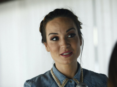 Prva fotografija je ona na kojoj je ova dama u crnim zvonastim pantalonama i crnom korsetu, preko koga se opredelila za plavi duži strukirani sako. Slična kombinacija našla se među 4 fotografije, na kojoj je pevačica ponovo u crnim pantalonama, ali gore ima zakopčani satenski, pink sako. Tunika-haljina lapršavog letnjeg materijala, na kojoj dominira narandžasto-crvena boja joj je, očigledno, među omiljenim kombinacijama.