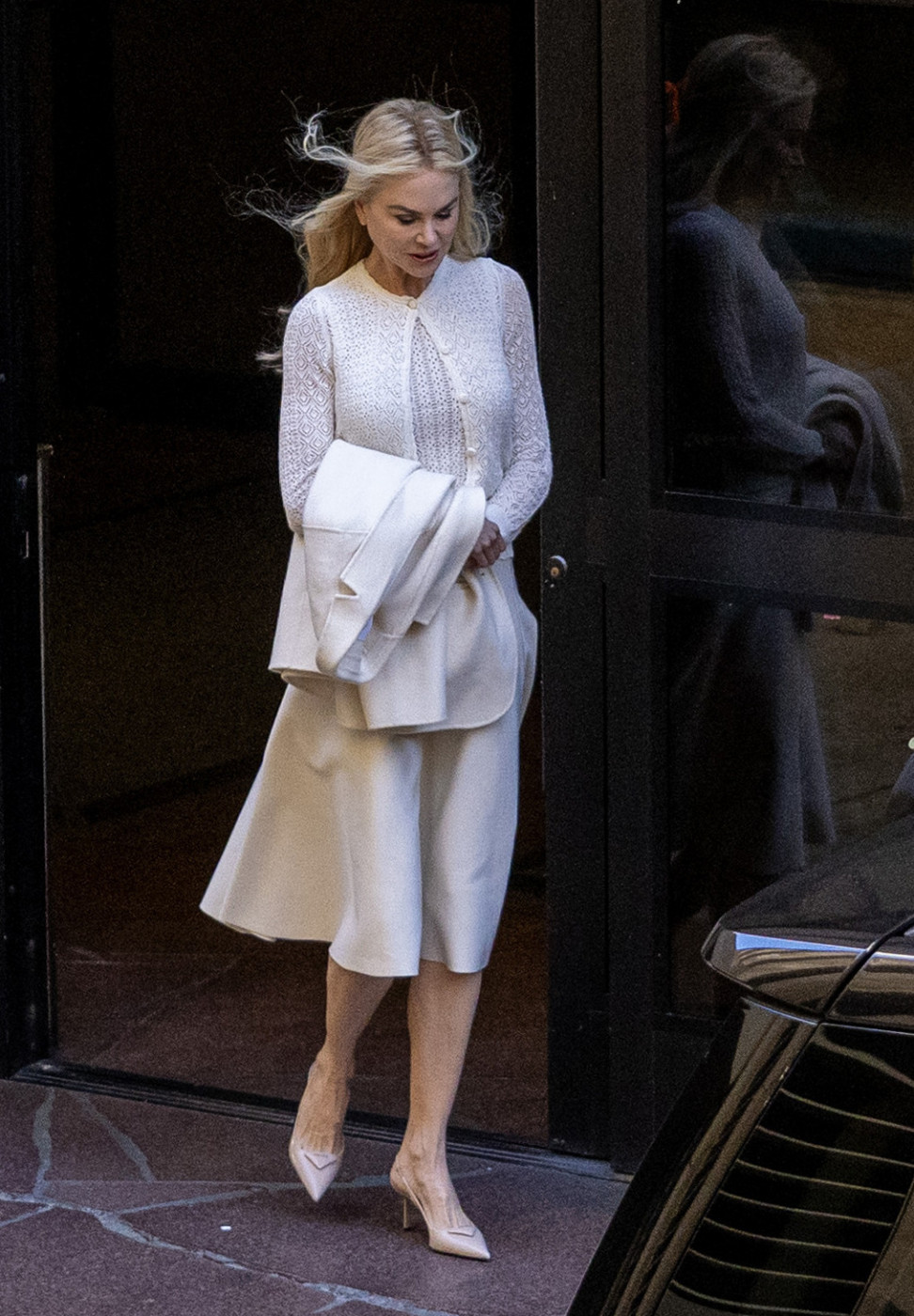 Tako je Nikol Kidman iznenadila sve tokom snimanja u Nju Orleansu, svojom belom odevnom kombinacijom, koja podseća na retro otmenu, mladalačku toaletu za venčanje.