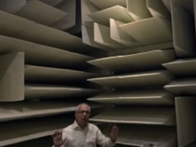 Ona je još poznata kao anehogena komora u sedištu kompanije u Redmondu u Vašingtonu. “Ultraosetljivi testovi” obavljeni 2015. dali su prosečno očitavanje pozadinske buke od -20,35 dBA na osnovu merenja nivoa zvučnog pritiska. Reč anehoična znači “bez eha”, a bilo je potrebno dve godine da se dizajnira prostor. Sastavljen od šest slojeva betona i čelika, malo je odvojen od okolne zgrade. Niz opruga za prigušivanje vibracija se nalazi ispod. Unutra, klinovi od fiberglasa su postavljeni na pod, plafon i zidove da bi razbili zvučne talase pre nego što bi oni imali priliku da se vrate u prostoriju. Smatra se da veoma mali broj ljudi može da izdrži boravak u prostoriji duži vremenski period, najviše izdrže unutra sat vremena.