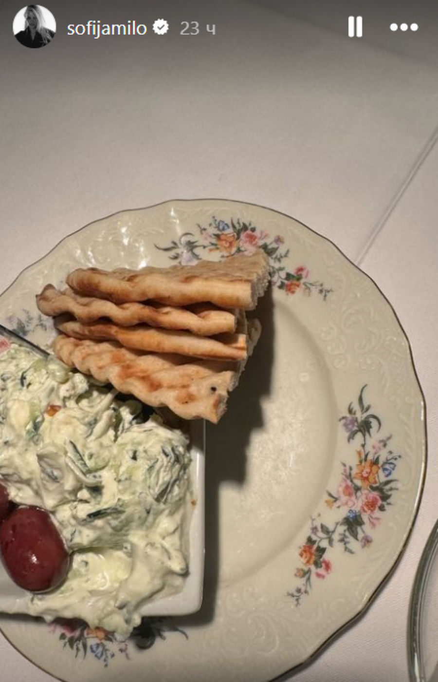 Nije promaklo da je manekenka i na strogom režimu ishrane. Tako je na jednoj od priča na Instragramu objavila jedan svoj obrok. U pitanju je nekoliko komadića neke vrste tortilje koja je po svemu sudeći napravljena bez "teških" ugljenih hidrata, a uz nju je bila salata sa kremnim namazom i poneki čeri paradajz. Možda mnogima izgleda kao užina ili "meze", ali za Sofiju to je kompletan obrok, dok rezultati u vidu izvajanog tela nisu izostali. Takođe, posle treninga nije usledila kafa, već kako je naglasila, kurkuma napitak.